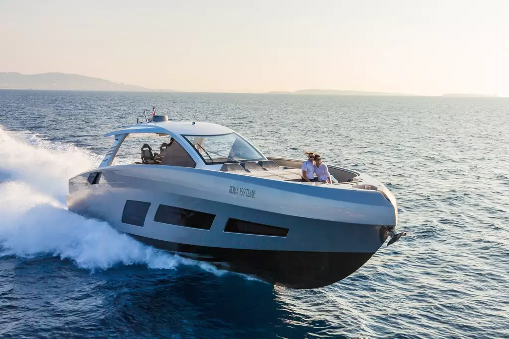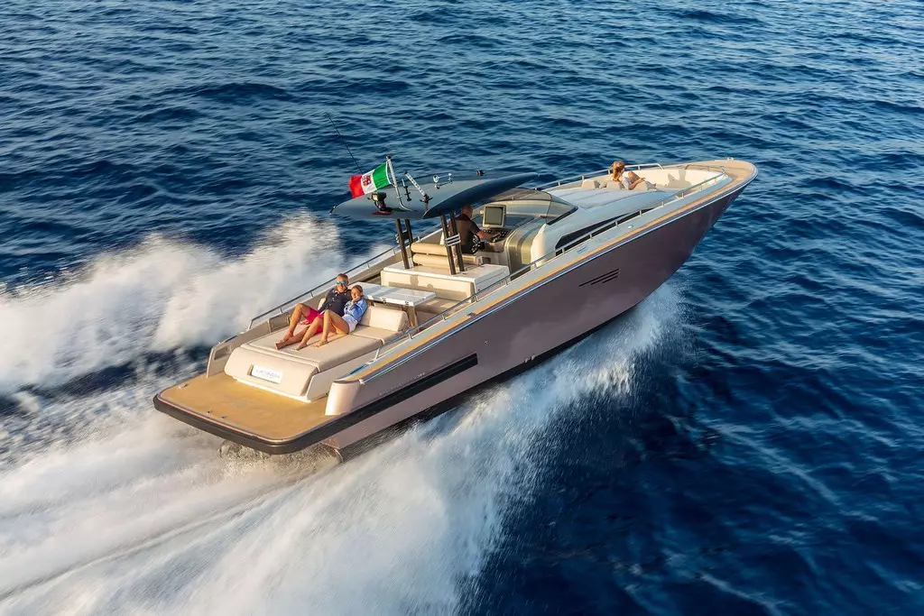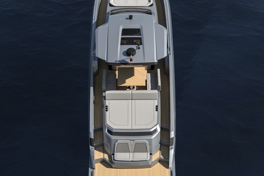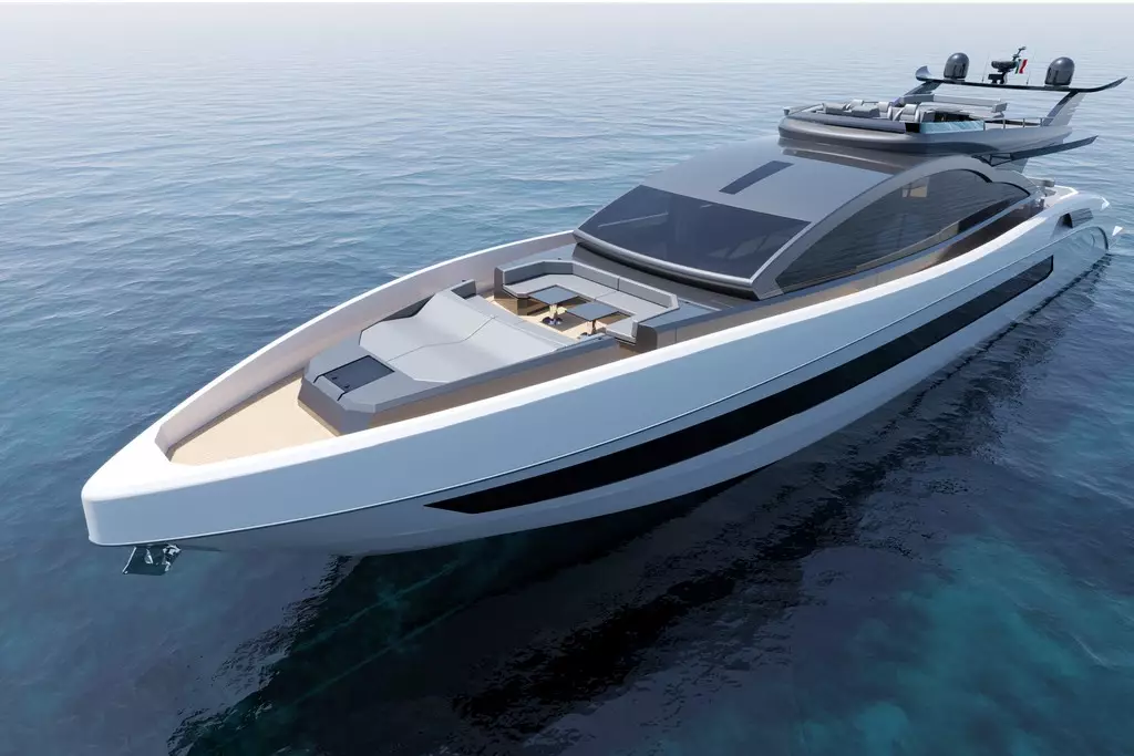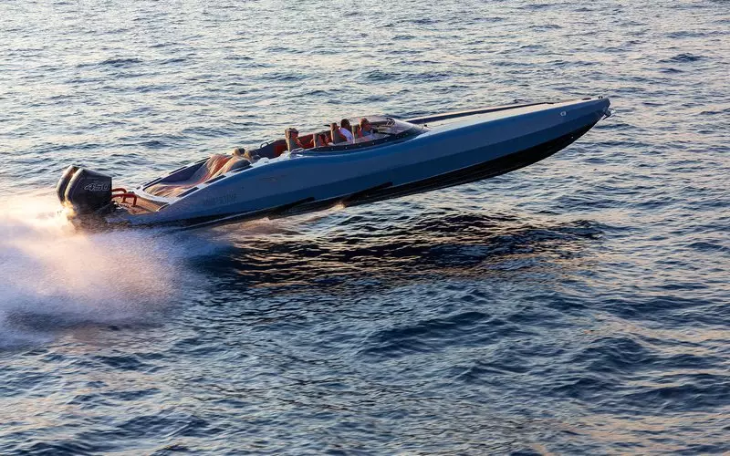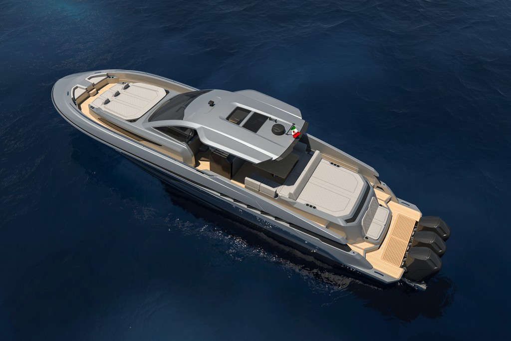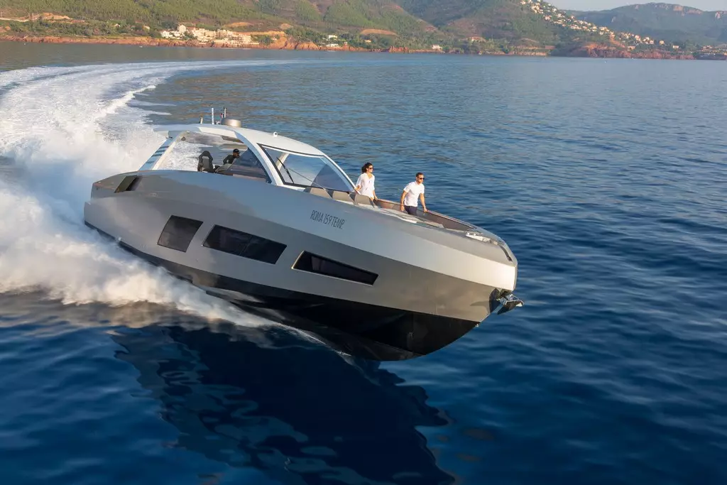 This impressive vessel can reach speeds of 50 knots and is available with three different power packages. Hull #1, which will be based in the Gulf of Saint-Tropez, is currently being built in the triple engine configuration.