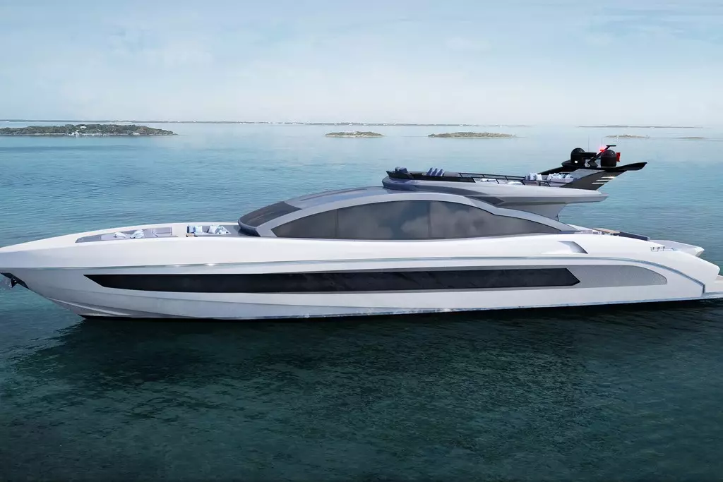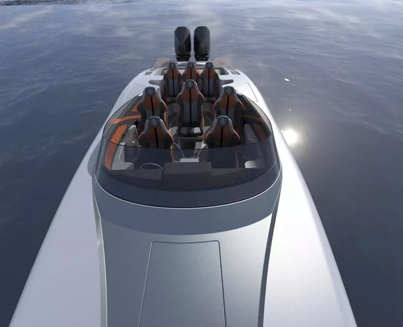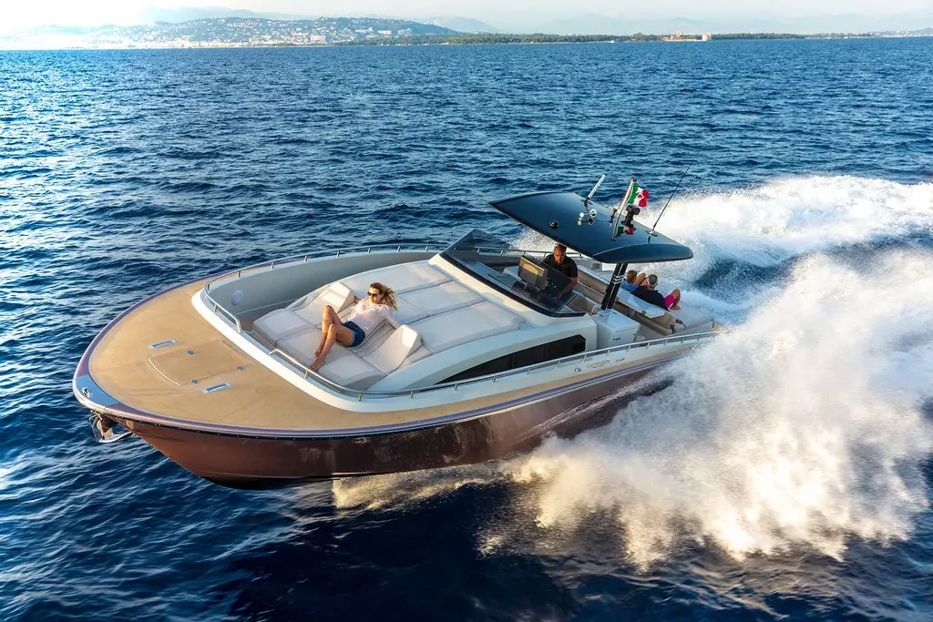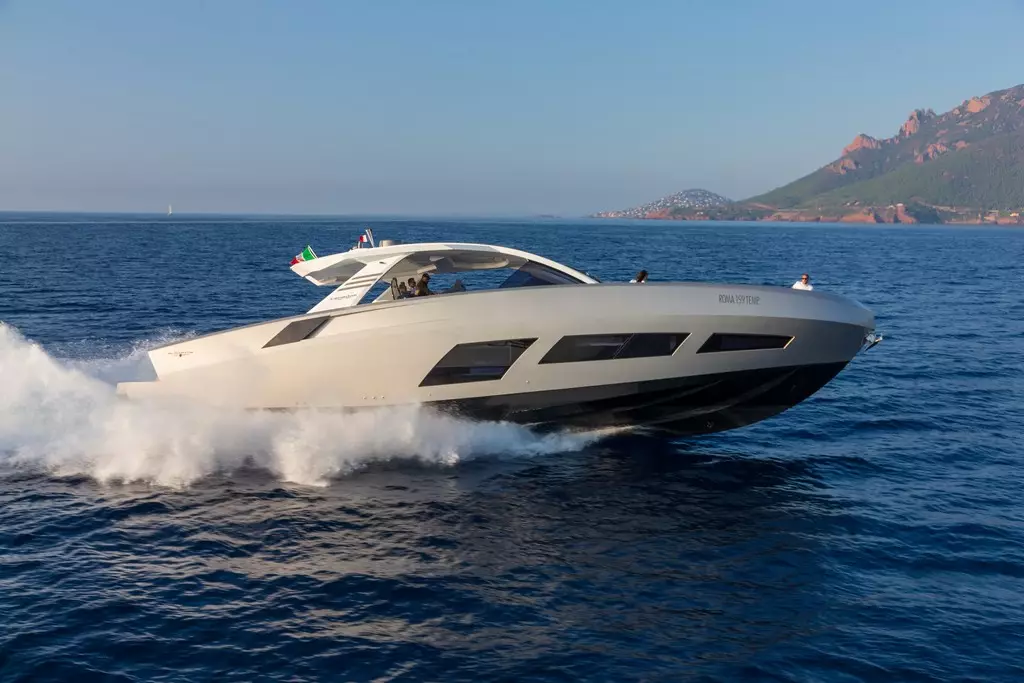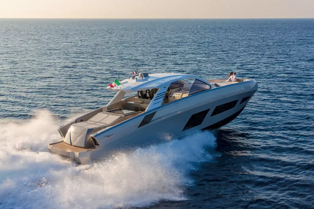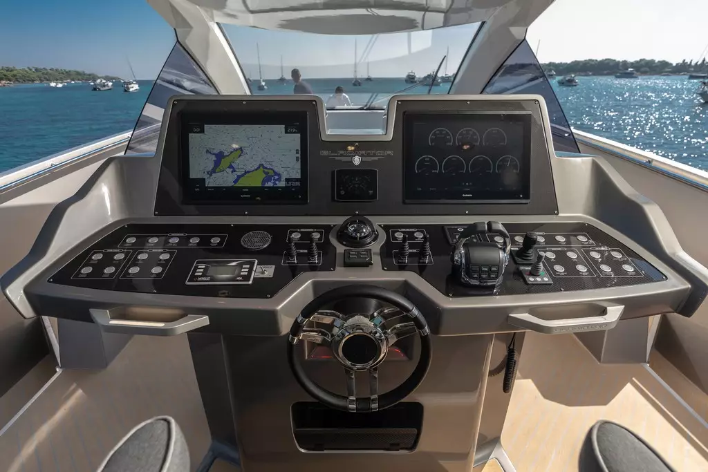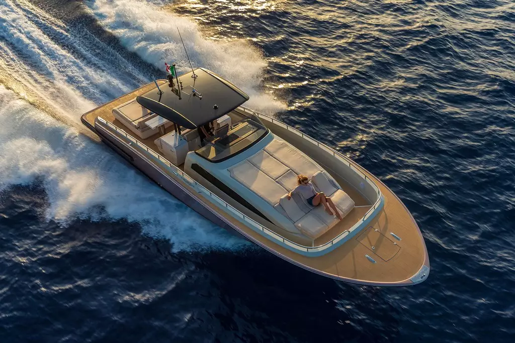 This impressive vessel can reach speeds of 50 knots and is available with three different power packages. Hull #1, which will be based in the Gulf of Saint-Tropez, is currently being built in the triple engine configuration.