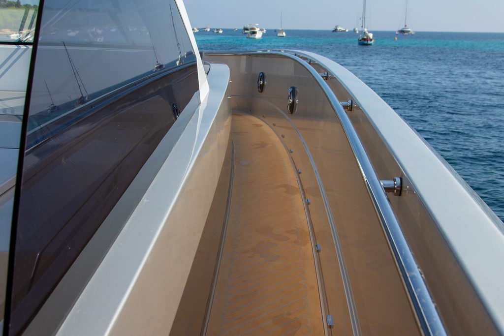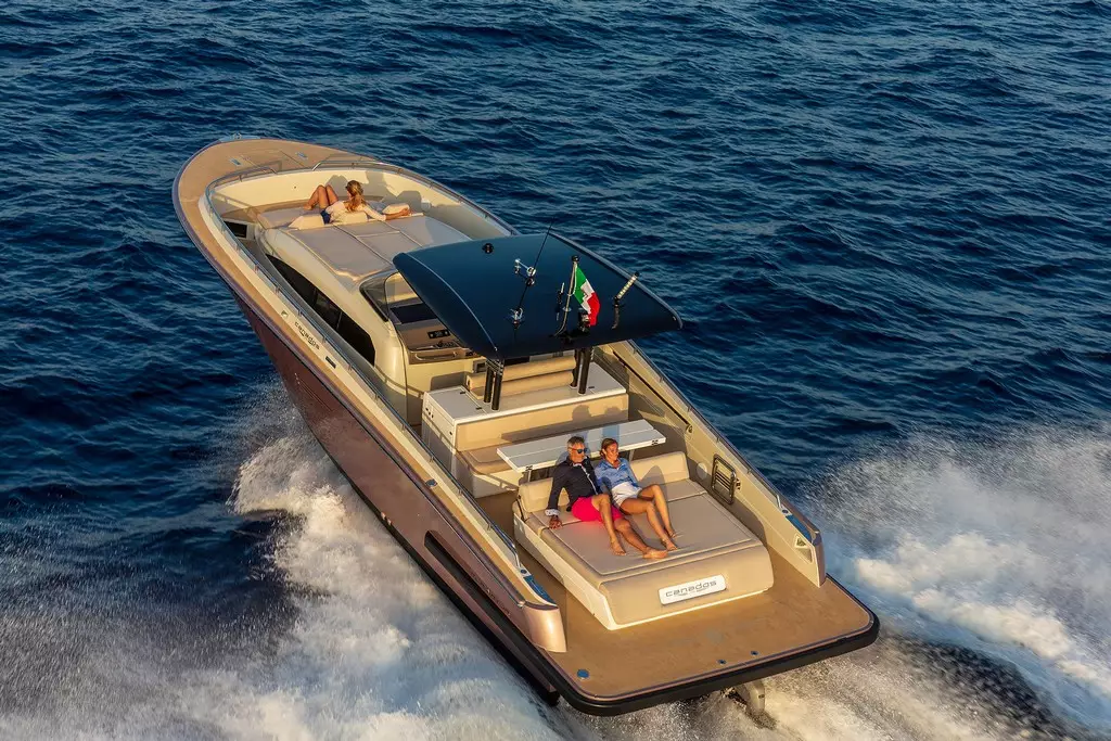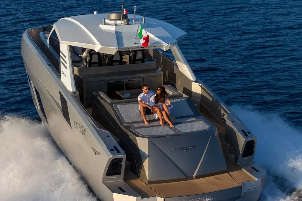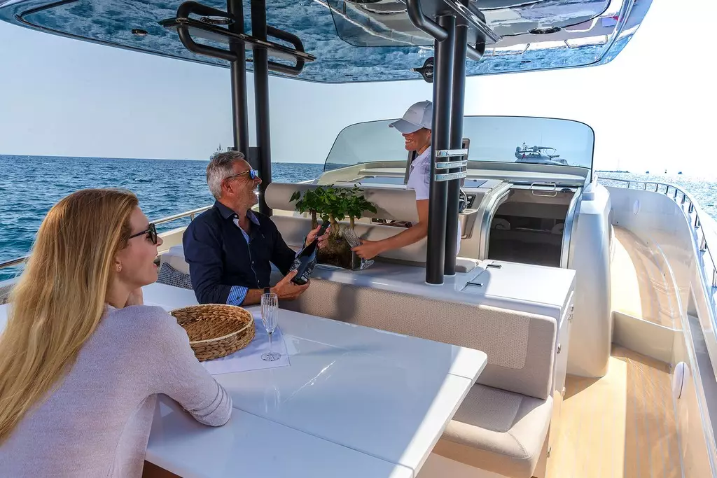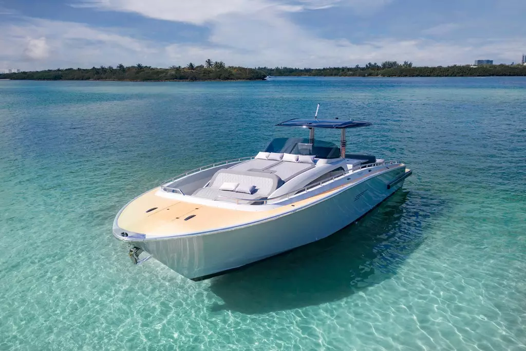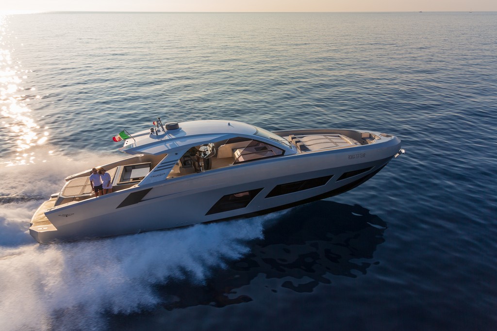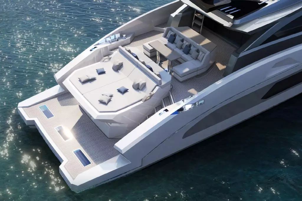 This impressive vessel can reach speeds of 50 knots and is available with three different power packages. Hull #1, which will be based in the Gulf of Saint-Tropez, is currently being built in the triple engine configuration.