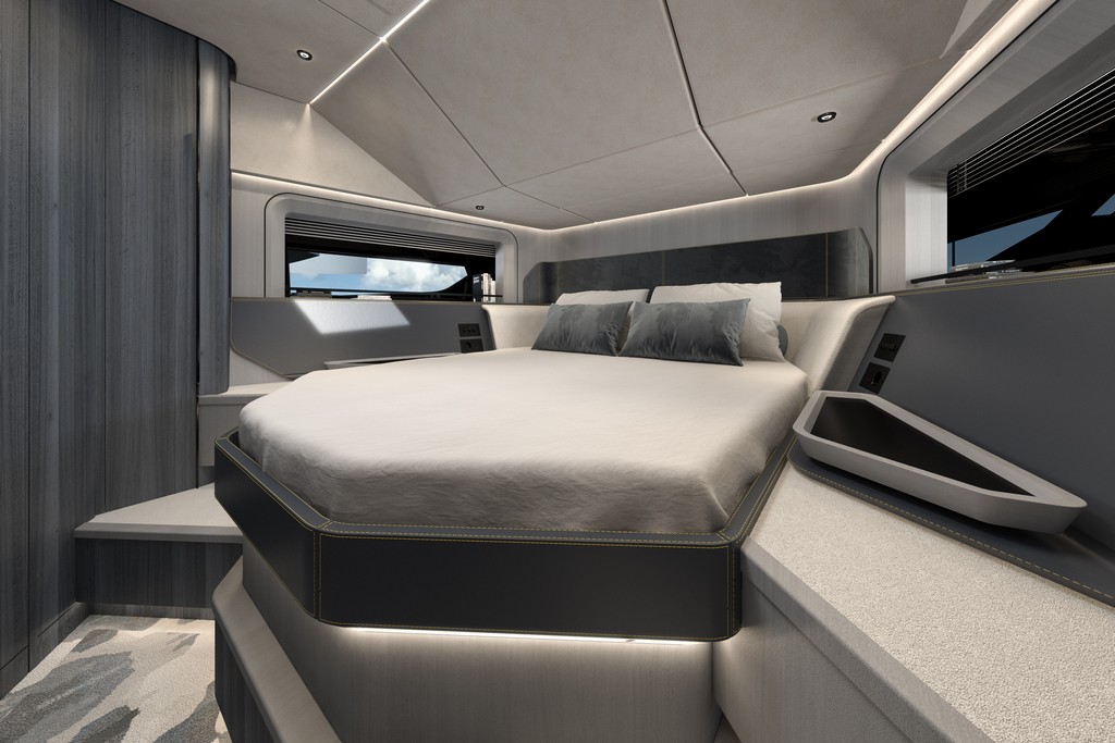For the interior layout, owners can choose two staterooms with two heads, a salon and a captain’s cabin: or three staterooms and two heads with either a salon or a captain’s cabin.