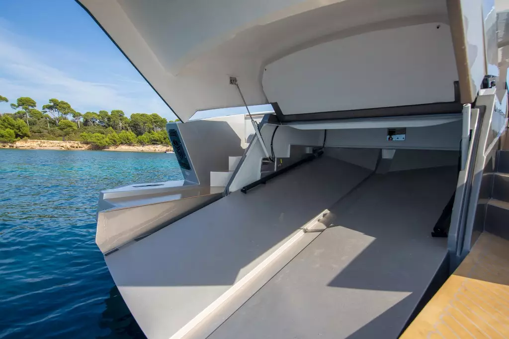 She comes with a deep swimming platform which, as an option, can be converted into hydraulic swimming or boarding stairs.